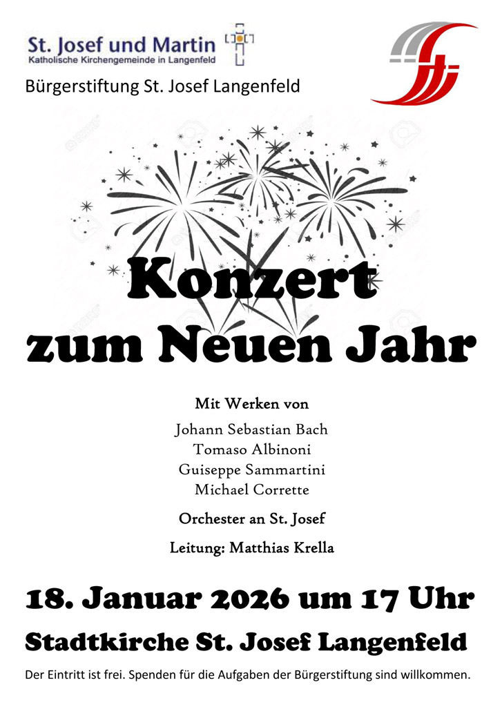 die Bürgerstiftung St. Josef Langenfeld hat für den 18. Januar 2026 um17Uhr wieder ein „Konzert zum neuen Jahr“ geplant.